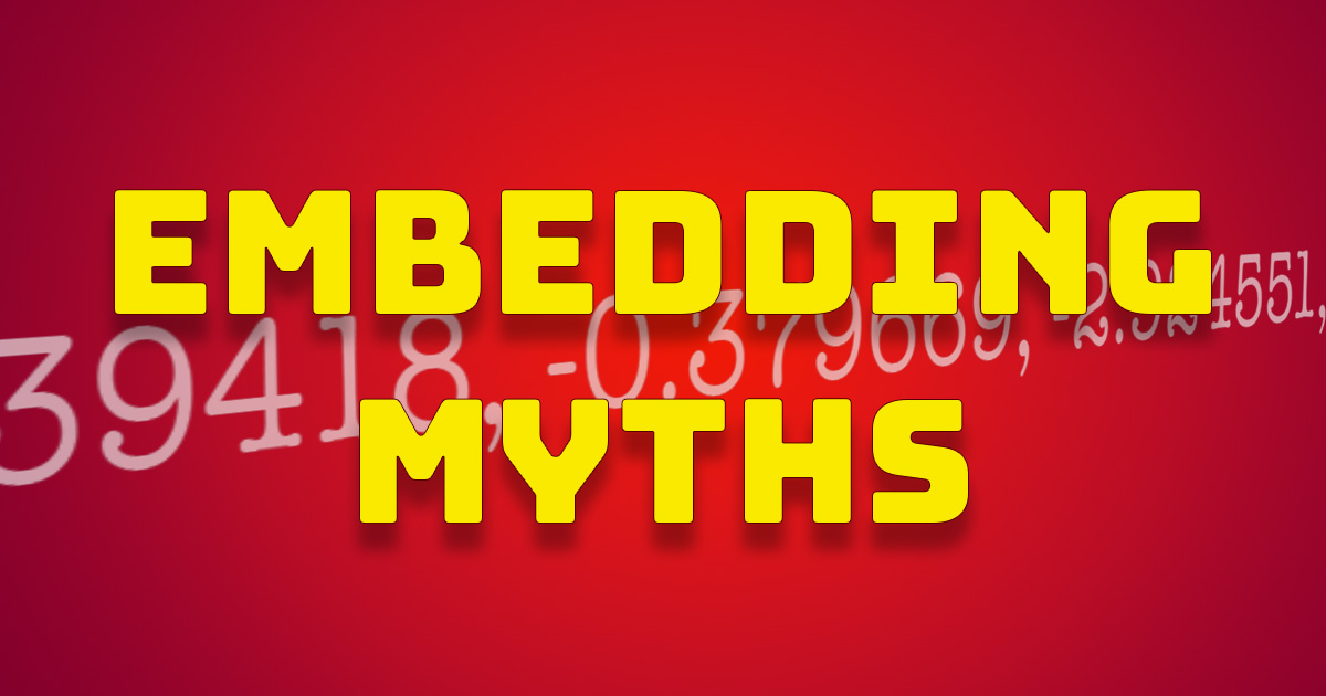 An embedding is simply a big list of numbers, typically represented as a vector of 300 to 4096 numbers between -2 and 2. That list of numbers represents a machine learning model’s complex interpretation of the meaning in the input. Inputs can be text, images, audio, photos, and more. It’s a distillation of the extracted meaning – the model itself may have tens of thousands or millions of traits and categories – so each value in the embedding has a lot of information packed into it. This density of information isn’t something a human can follow, and because of that, embeddings are frequently (incorrectly!) thought of as meaningless if exposed.