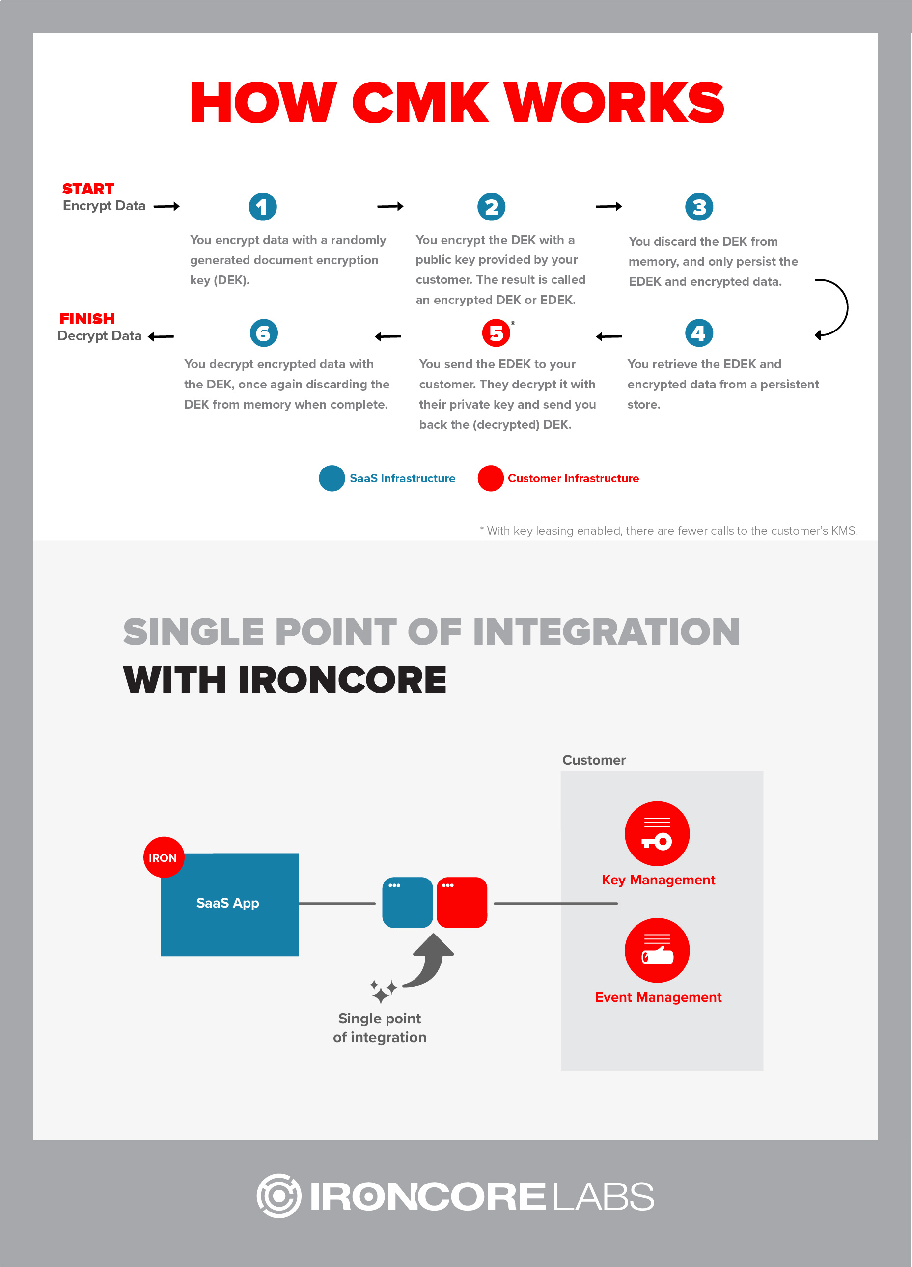SaaS Shield Product PageIronCore adds a number of features and integrations and handles a variety of supported key management systems including Google Cloud KMS, Amazon KMS, Azure Key Vault, and Thales CipherTrust Manager so your customers can use their platform of choice. IronCore also enables your customers to manage KMS configurations using end-to-end encryption and abstracts policy choices away from developers so your developers can focus on simple integration code without worrying about the complexities of key management, cryptography choices, SIEM integration, and so forth.